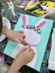 When setting up the arts and crafts station, she suggests having supplies in the space that are easy for kids to grab but also easy to put away.